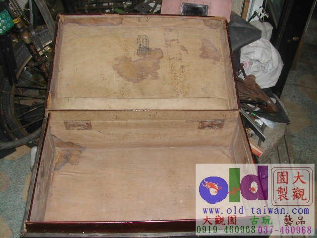 這是一款有年代的古董包牛皮的木箱~