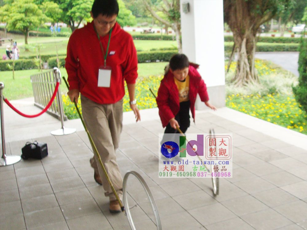 的人手持鐵絲,一邊推滾輪圈一邊跟著跑,此玩法直到現在仍然沒有改變。