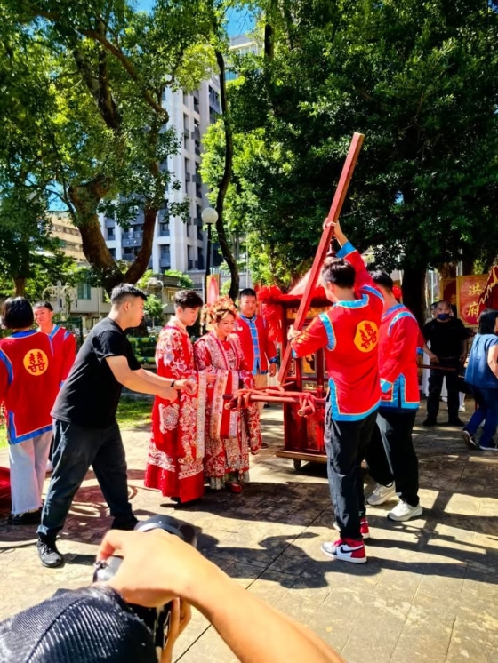 這一場來到新北市三重空軍一村,眷村文化園區,進行傳統囍轎婚禮。