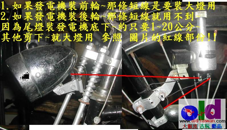 1.如果發電機裝前輪~那條短線是要裝大燈用
