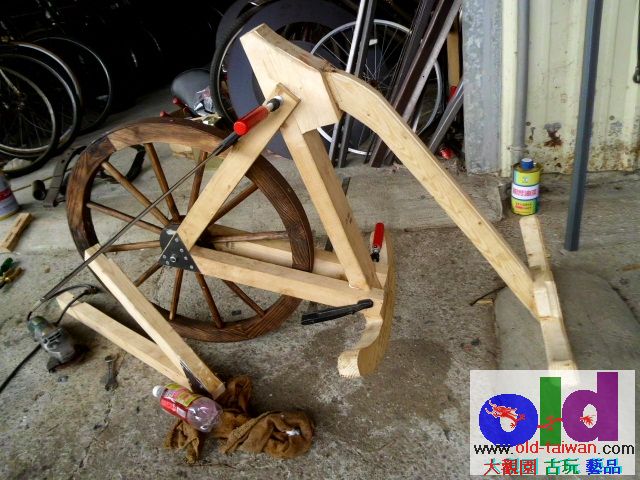 這樣的木頭自行車雖然還是用腳蹬地才可以前進,