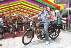 這些機車介於腳踏車與現代機車之間,造型相當另類,每次公開展出時,