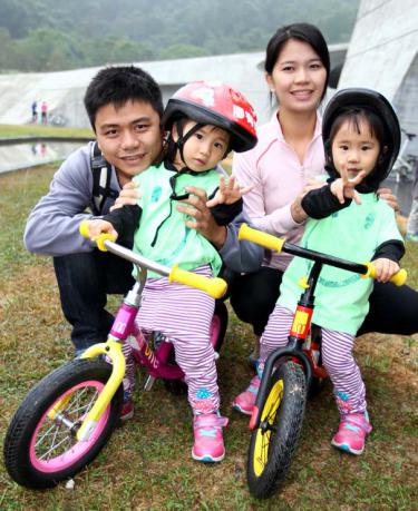 許坤源也和老婆郭美慧,帶著高三的許芩瑄和六歲的許芩瑜一起來日月潭騎車,