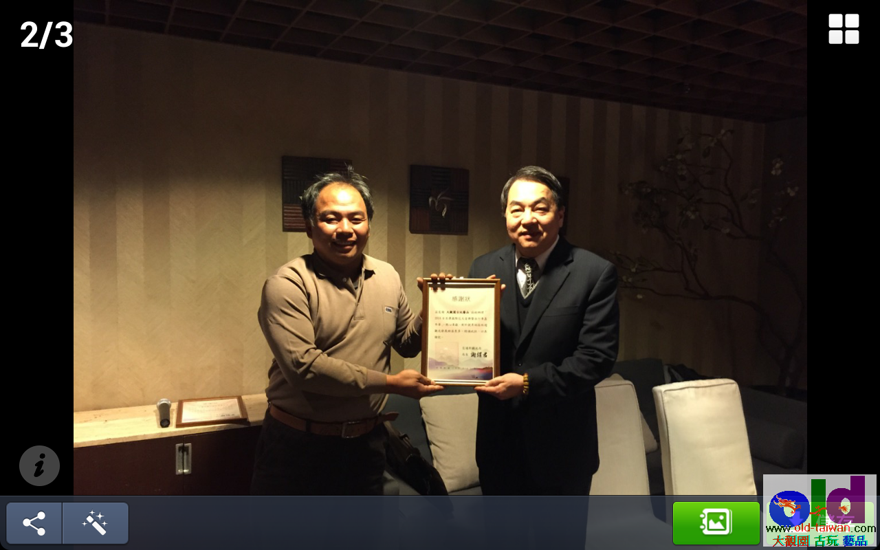 今天上台北 接受 交通部觀光局 局長的頒獎 與晚宴 餐敘