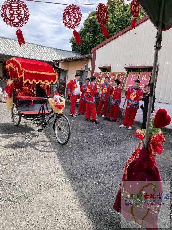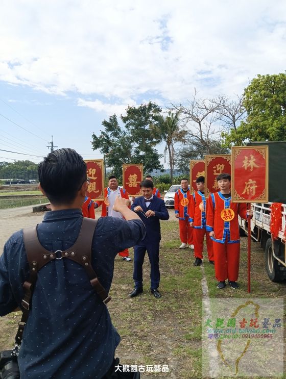 當道具裝飾完成後,新郎與夫家親友車隊到達現場,開始進行第一場訂婚儀式.....