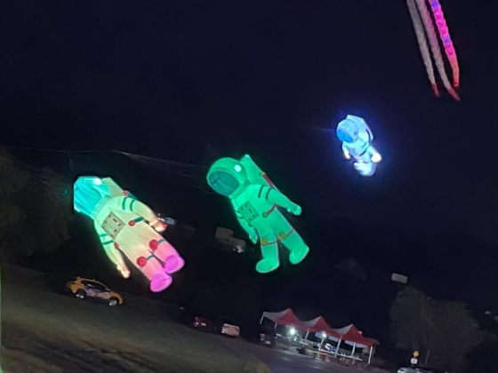 大會表定10點準時發車,從大榕樹圓環出發,途經會場入口處,風箏表演競賽區,各單位活動宣傳區,大會舞台廣場,美食廣場繞一圈,約十分鐘左右。
