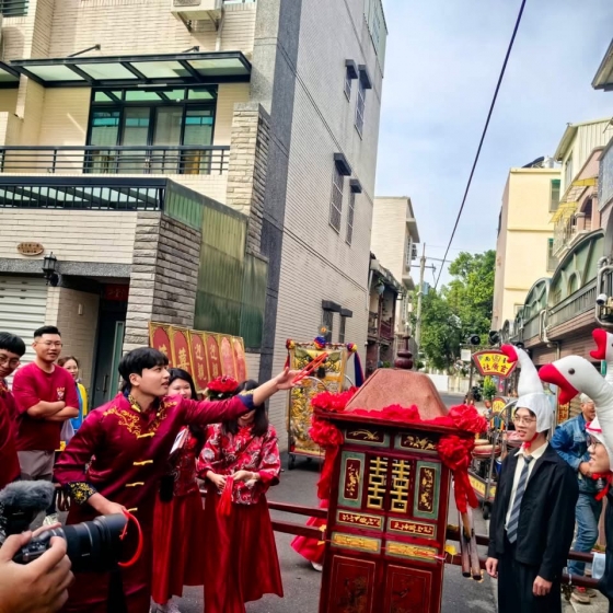 永康的新郎迎娶歸仁的新娘,放棄自家的勞斯萊斯禮車,就是要用咱們家的囍轎。